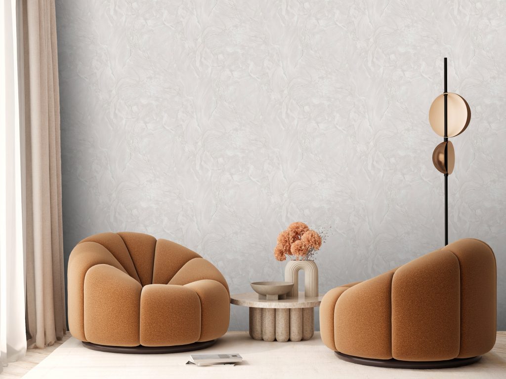 Природный каменный узор с изящными прожилками и глубокой фактурой превращает стены в монументальное произведение искусства. Деликатное сияние перламутра, вплетенное в структуру полотна, придает стенам объем и игру света.