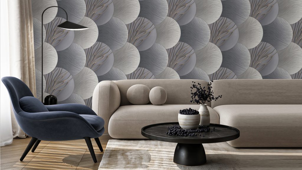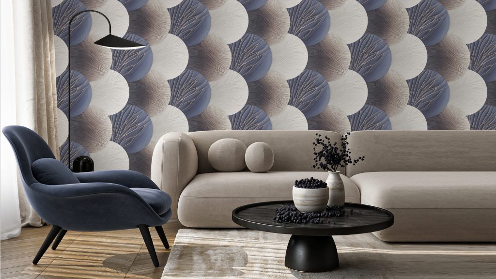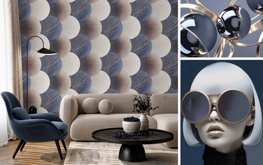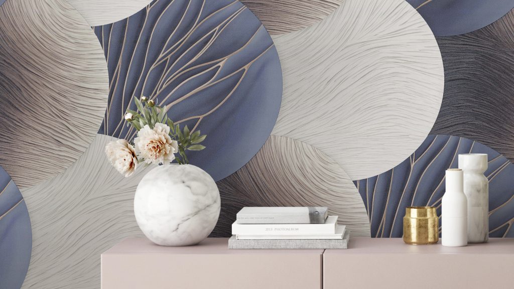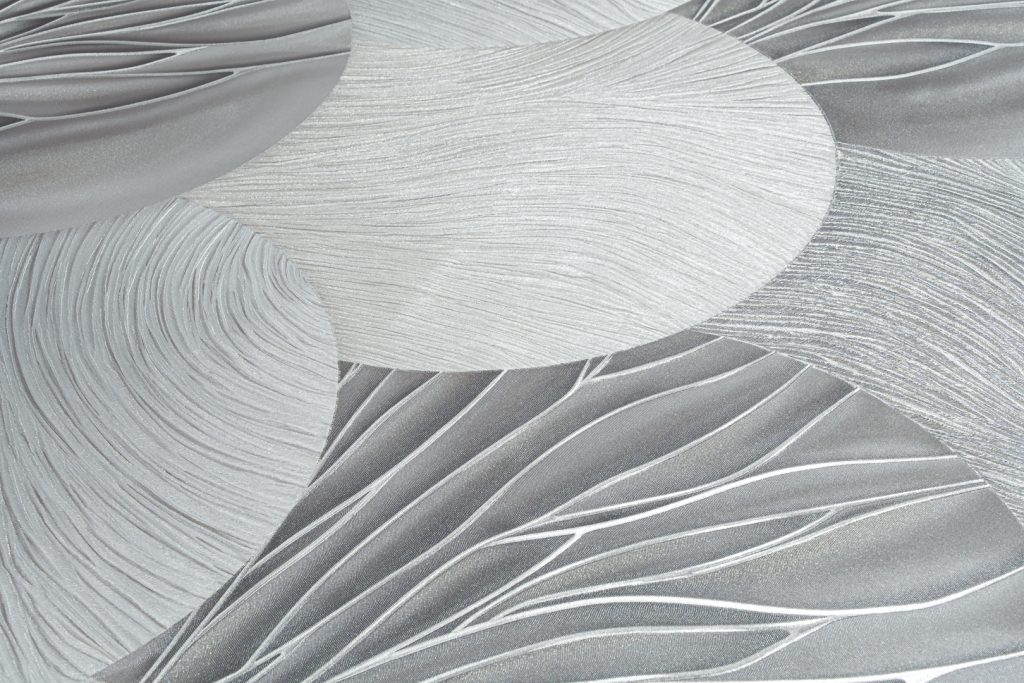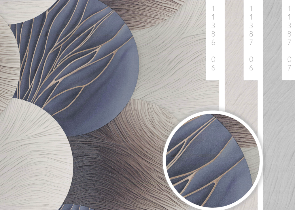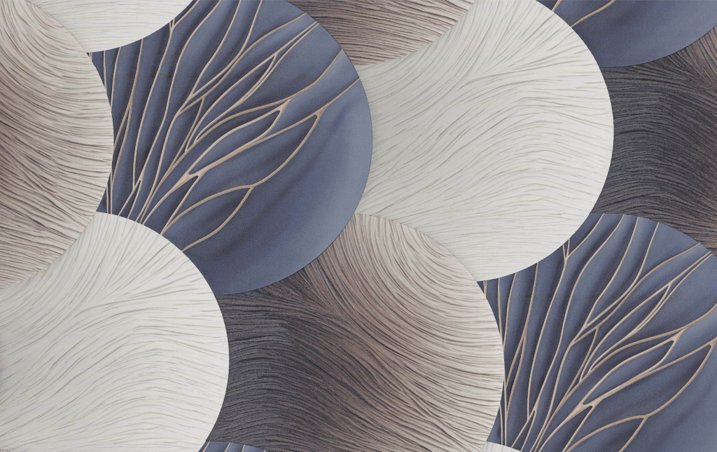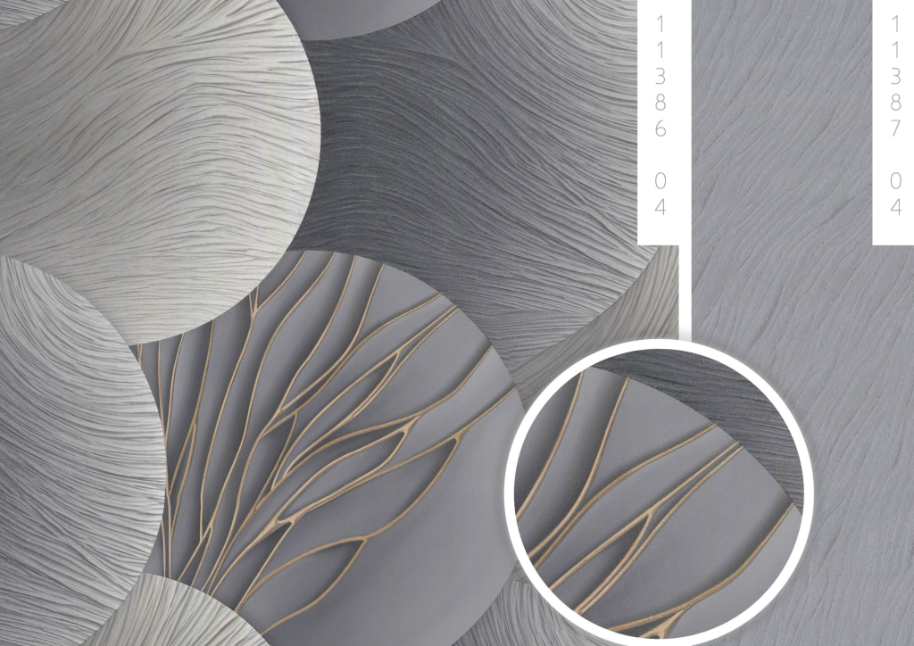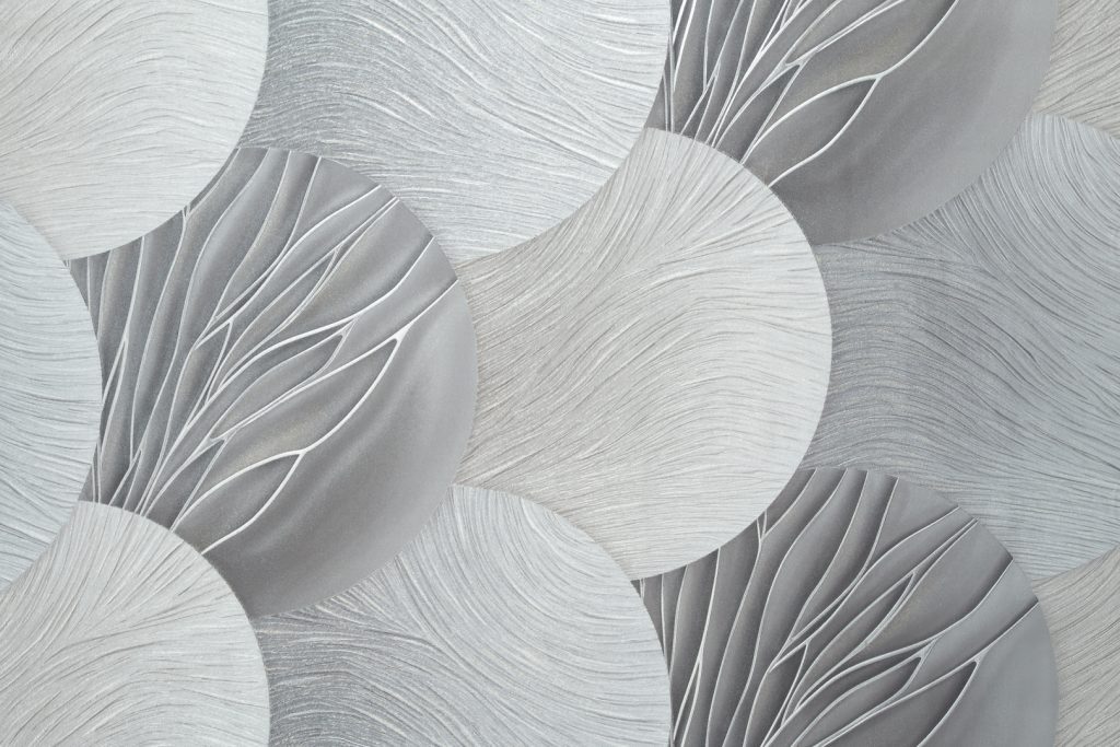 Современные тренды и космическая эстетика в коллекции обоев «Альто». Выразительные круги-планеты с 3D эффектом выполнены в объёмном тиснении.