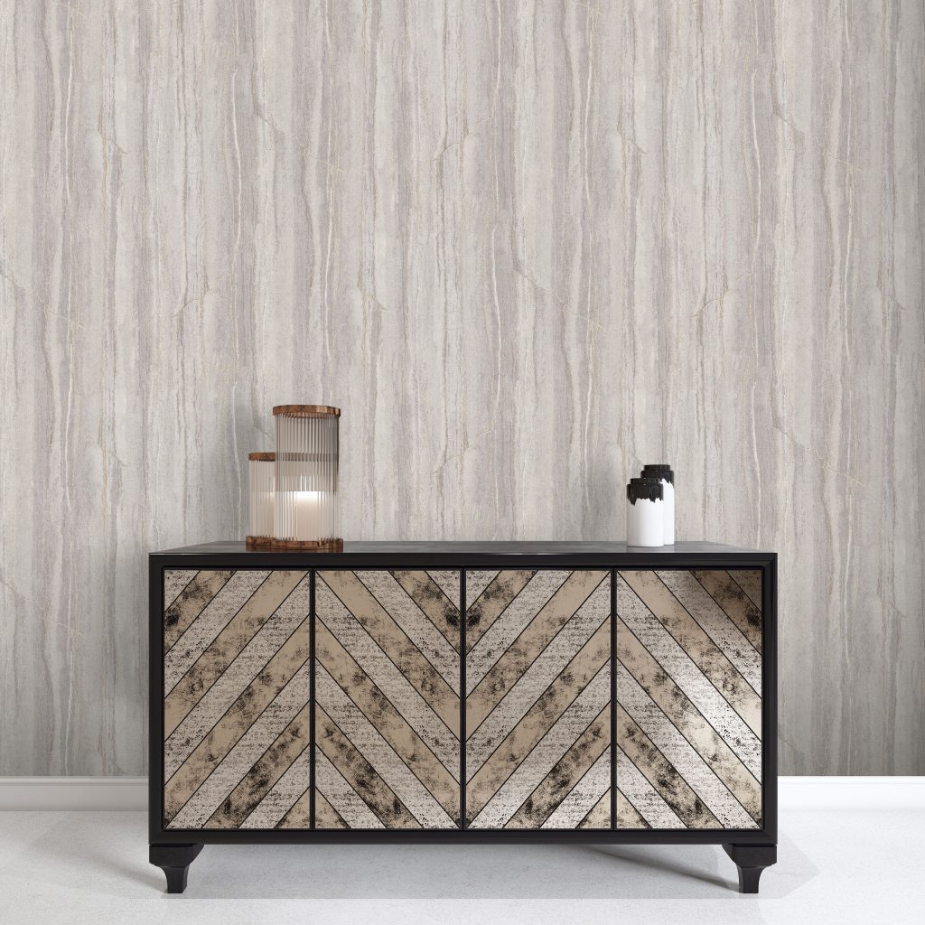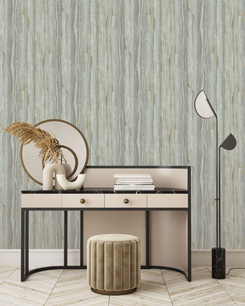 Полотна украшены тонким глиттером, подчёркивающим линии и прожилки — словно это мельчайшие частицы кварца внутри каменной структуры. При дневном свете блеск едва уловим и напоминает пыльцу минералов на солнце, а при вечернем освещении раскрывается мягким мерцанием, придавая поверхности выразительность, подчёркивая богатство фактуры и усиливая ощущение природного объёма. Цветовая палитра коллекции выдержана в приглушённых, естественных тонах, характерных для минералов. Здесь встречаются оттенки светлого известняка, жемчужно-серого, тёплого бежевого и песочного, а также более насыщенные тона графита, пепельного и серо-зелёного. Каждый цвет будто взят из самой природы: холодные серые тона напоминают свежесть камня после дождя, а тёплые бежевые — поверхность, прогретую солнцем. Коллекция «Pietra» создана для интерьеров, где ценятся текстура и природная гармония. Она станет изысканным фоном для пространств в стилях минимализм, современная классика, эко, wabi-sabi и японский модерн. Такие обои идеально подойдут для гостиной, спальни или кабинета — там, где важны спокойствие, устойчивость и ощущение природной цельности.