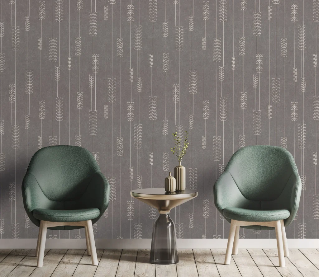 Обои выполнены в матовом исполнении с минимальным количеством спецэффектов. Взгляд привлекают градиентные переходы в линиях рисунка и контраст между цветами. Текстура имитирует рогожку, придавая полотнам насыщенность и визуальную глубину. Коллекция включает четыре цвета: белый, бежевый, серый и темно-коричневый. Фоны коллекции по цвету и текстуре повторяют фоны мотивов, создавая идеальное сочетание. Эта коллекция станет отличным выбором для тех, кто ценит минималистичные, но выразительные решения в дизайне